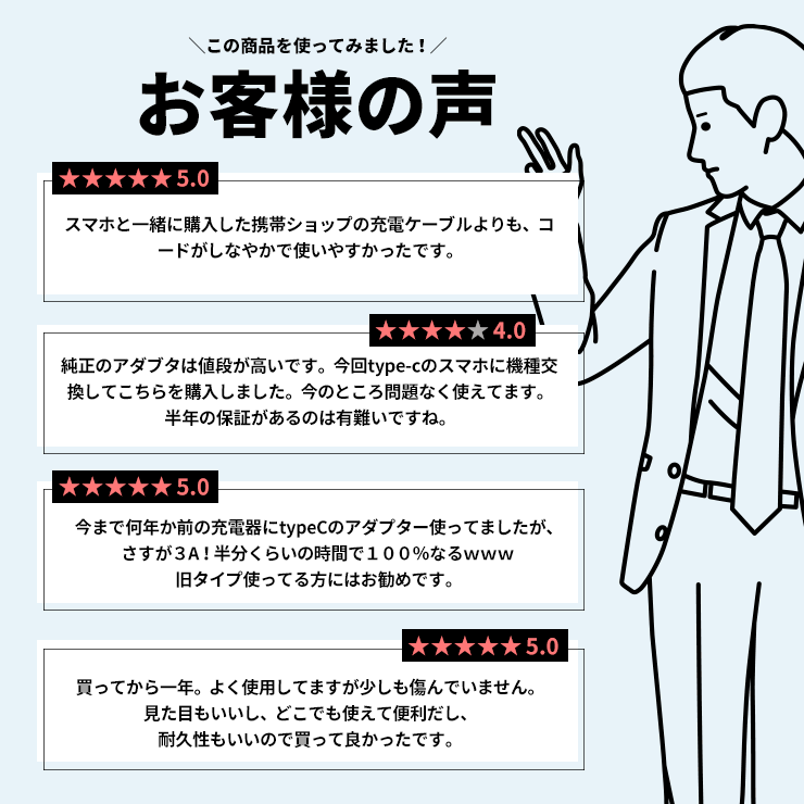 対応機種: Sony Xperia Sharp AQUOS Samsung Galaxy arrows HUAWEI ASUS Zenfone HTC LG Nexus Microsoft Xperia Ace AQUOS R3 Galaxy S10 Galaxy S10 arrows Be3 Xperia 1 LG style2 HUAWEI P30 Pro Google Pixel 商品説明 最新のスマートフォンに搭載されている、USB Type-Cケーブルが一体になった、USB PD パワーデリバリー 対応 ACアダプタが登場!USB TYPE-Cコネクタを搭載した、スマートフォンやタブレットなどを充電できます! 商品特徴 ●USB TypeC対応のスマートフォンやタブレット、パソコンを充電可能! ●USB PD パワーデリバリー 対応で急速充電! ●入力電圧100-240Vで海外での利用も可能!(コンセント形状 タイプA対応) ※その他の形状は海外変換アダプタ等が必要になります。