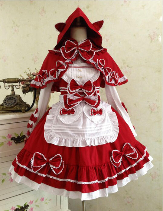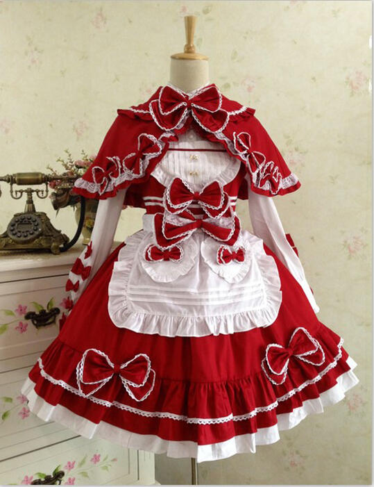 ロリータ ワンピース エプロン ケープ セット メイド コスプレ レディース かわいい肩紐 ロリィタ ゆめかわいい 豪華 リボン レース