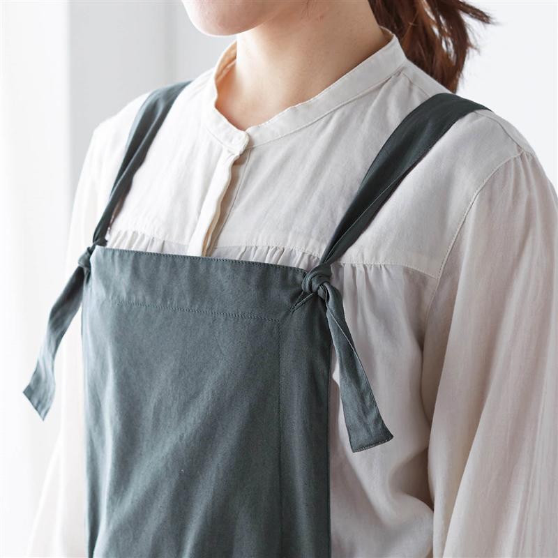リネンエプロン 先染め高級リトアニアリネン仕様のバッククロス肩紐腰ループ止めエプロン