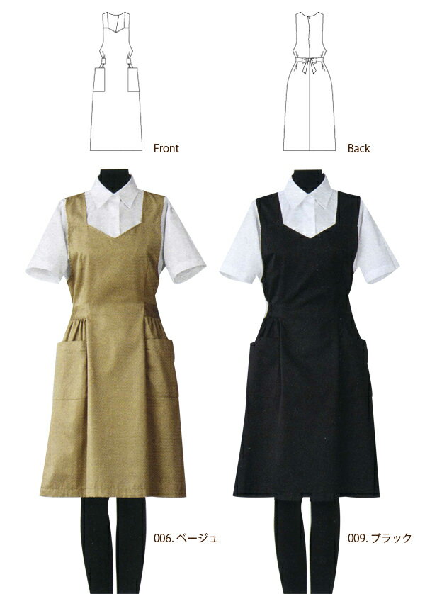 エプロンドレス CS2322 【セブン SEVEN】女性用 カフェ レストラン 制服 サービス ウェイトレス 細見せ 腰紐 Aライン 飲食店 フード ホテル ホール