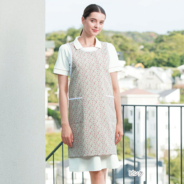 LBA4330 ナガイレーベン リバティプリント ナースウェア エプロン 男女兼用 両腰ポケット 肩ひも落ちにくい ポリエステル100% NAGAILEBEN LibertyPrint 医療用 看護師 介護 ケア ユニセックス ケアガウン 予防衣 予防着 可愛いエプロン