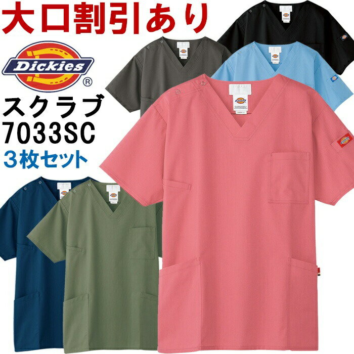 スクラブ 白衣 Dickies ディッキーズ スクラブ 7033SC SS-4L 3枚セット 男女兼用 ユニセックス メンズ レディース FOLK フォーク