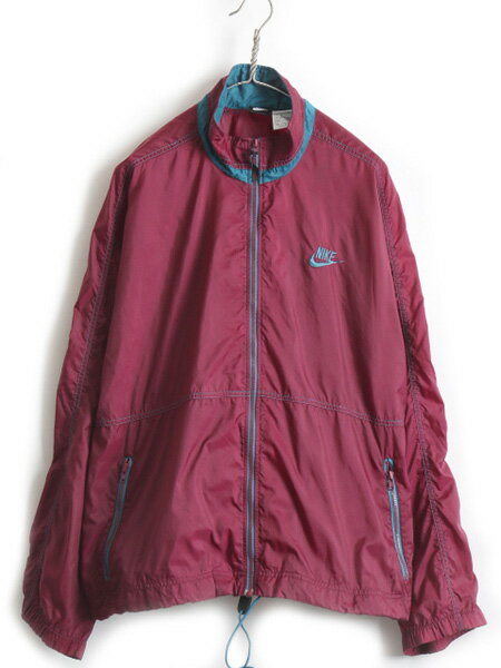 復刻物では無く、当時のオリジナル、 素材は、100% NYLON ( ナイロン ) 比較的薄手のノンリップナイロン素材 フロントジップはロゴトップ付きYKKジッパー、 両サイドにジップ式ハンドウォーマーポケット 裾は、ドローコードで絞れる仕様 左胸にワンポイントのスウッシュロゴ刺繍 合わせやすいマルーン×ターコイズブルーの2トーン切替 シンプルで、1枚で様になる、着回しのきく 価格高騰中の90'sのスポーツ系アイテムです。